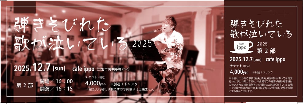 内容の異なる2公演を桜庭さんのギターでお楽しみ下さい。