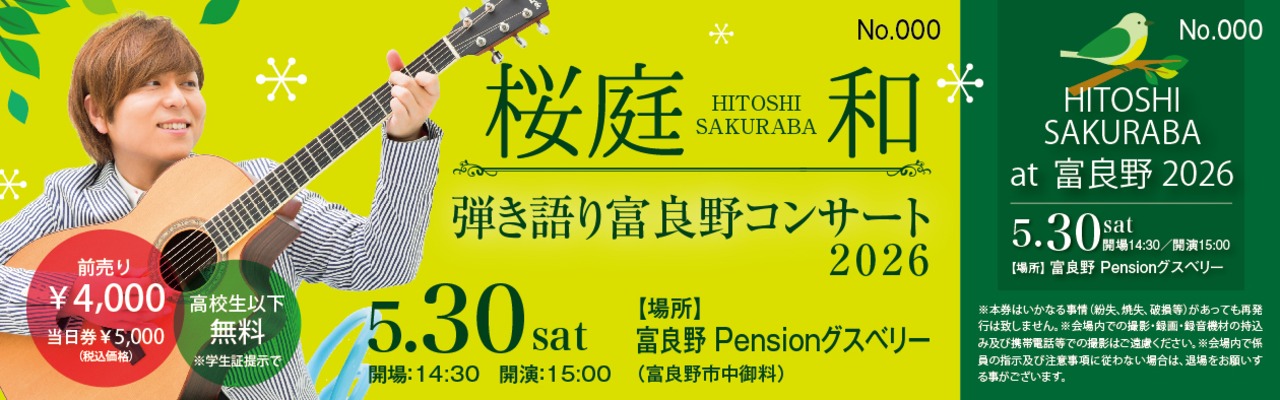 桜庭 和 弾き語り富良野コンサートat Pensionグスベリー【LIVEチケット】