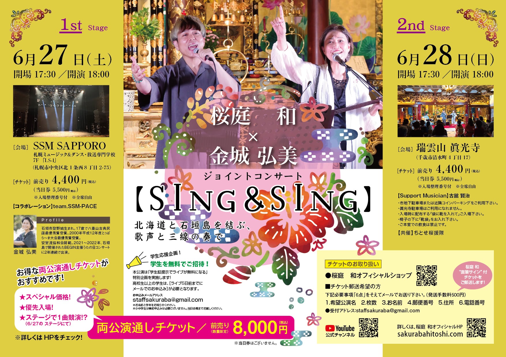 桜庭 和×金城 弘美 ジョイントコンサート【SING&SING】at 瑞雲山 眞光寺/千歳市(6/28)